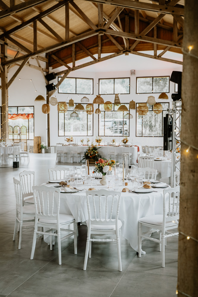 Quant à la décoration, elle a été pensée autour d’une palette de couleurs vibrantes (et orangées !) et de matières naturelles. Elle reflétait parfaitement l’esprit du mariage annoncé dès la réalisation de leur faire-part. Fleurs de saison, touches colorées et lumière dorée ont accompagné cette journée hors du temps.