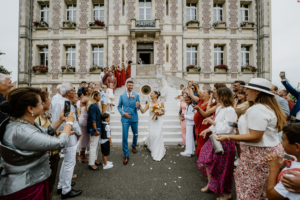 Une fois les préparatifs terminées, nos amoureux ont rejoint la Mairie, entourés de leurs proches. Un moment officiel et sincère, ponctué de sourires, de regards complices et de cette excitation particulière propre aux grands jours. Ce premier temps fort a marqué le début d’une journée riche en émotions.